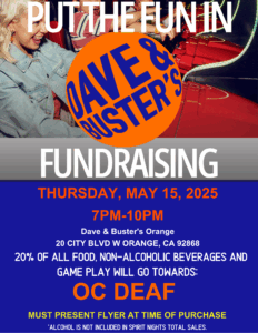 20% of all food, non-alcoholic drinks, and game play will be donated to OC DEAF